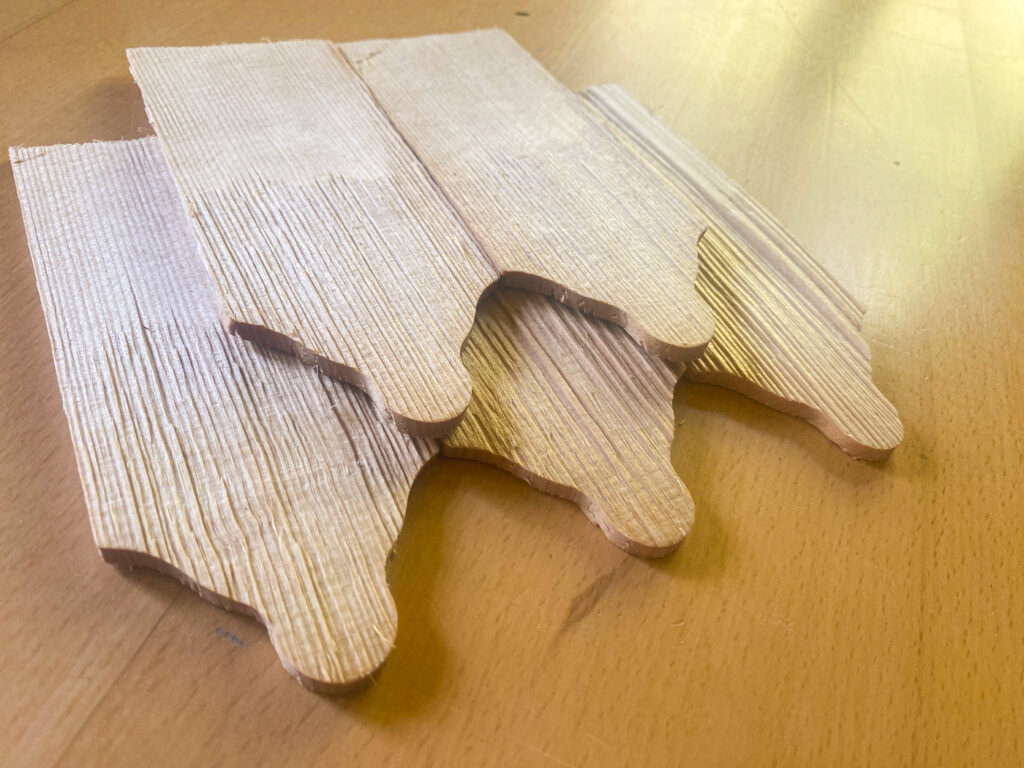 Sie brauchen Schindeln in einer speziellen Form? Kein Problem! Nach Mustervorlage fertigen wir individuelle Schindeln – auch für historische Bauten.